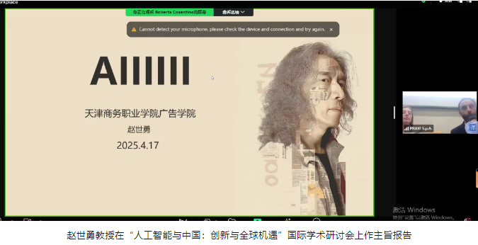 4月17日,学校广告学院院长赵世勇教授受邀以线上方式参加由意大利中国理事会基金会主办的“人工智能与中国:创新与全球机遇”国际学术研讨会。研讨会上,赵世勇教授围绕“中国市场营销与传播策略中的客户体验与人工智能整合”,为意大利的企业家、技术专家、院校专家学者开展了45分钟的主题演讲,并参与互动交流。